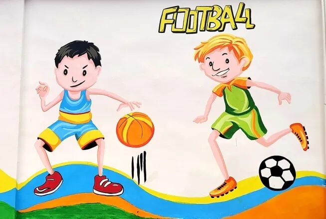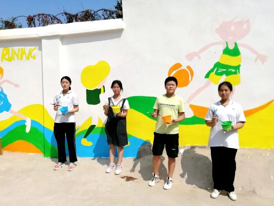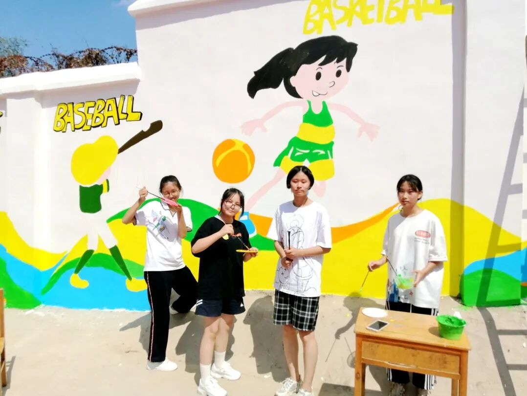 亲手为学校绘制了一幅精美手绘墙